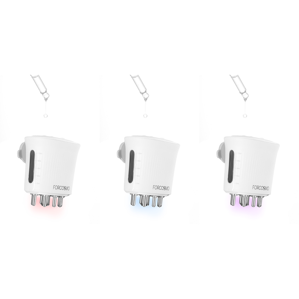 • موجات ضوئية متعددة (أحمر، أزرق، بنفسجي) لتنشيط بصيلات الشعر وقتل البكتيريا الضارة